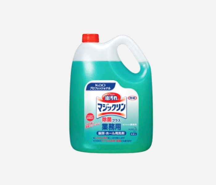 プロ向け専用処方で油汚れをぐんぐん落とし、除菌成分配合で洗浄と除菌が同時にできます。50倍まで薄めても除菌効果を発揮します。(微香性)